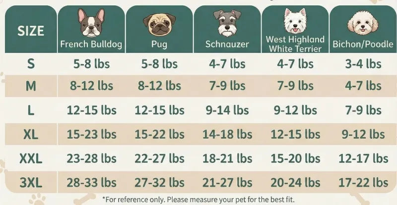 This Dog Shirt is stretchy and comfortable to wear. Below is our size recommendation based on your furry friends' weight. Please note that this shirt has a short back length, making it ideal for dogs with a more compact or shorter body type.