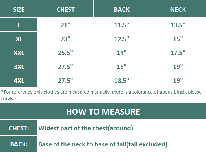 Model Schnauzer is 16lbs (7.25kg) wearing size XL.