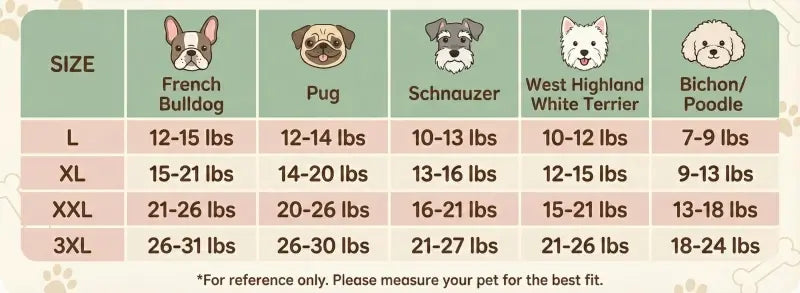 Model French Bulldog is 27lbs (13kgs) wearing size 2XL.